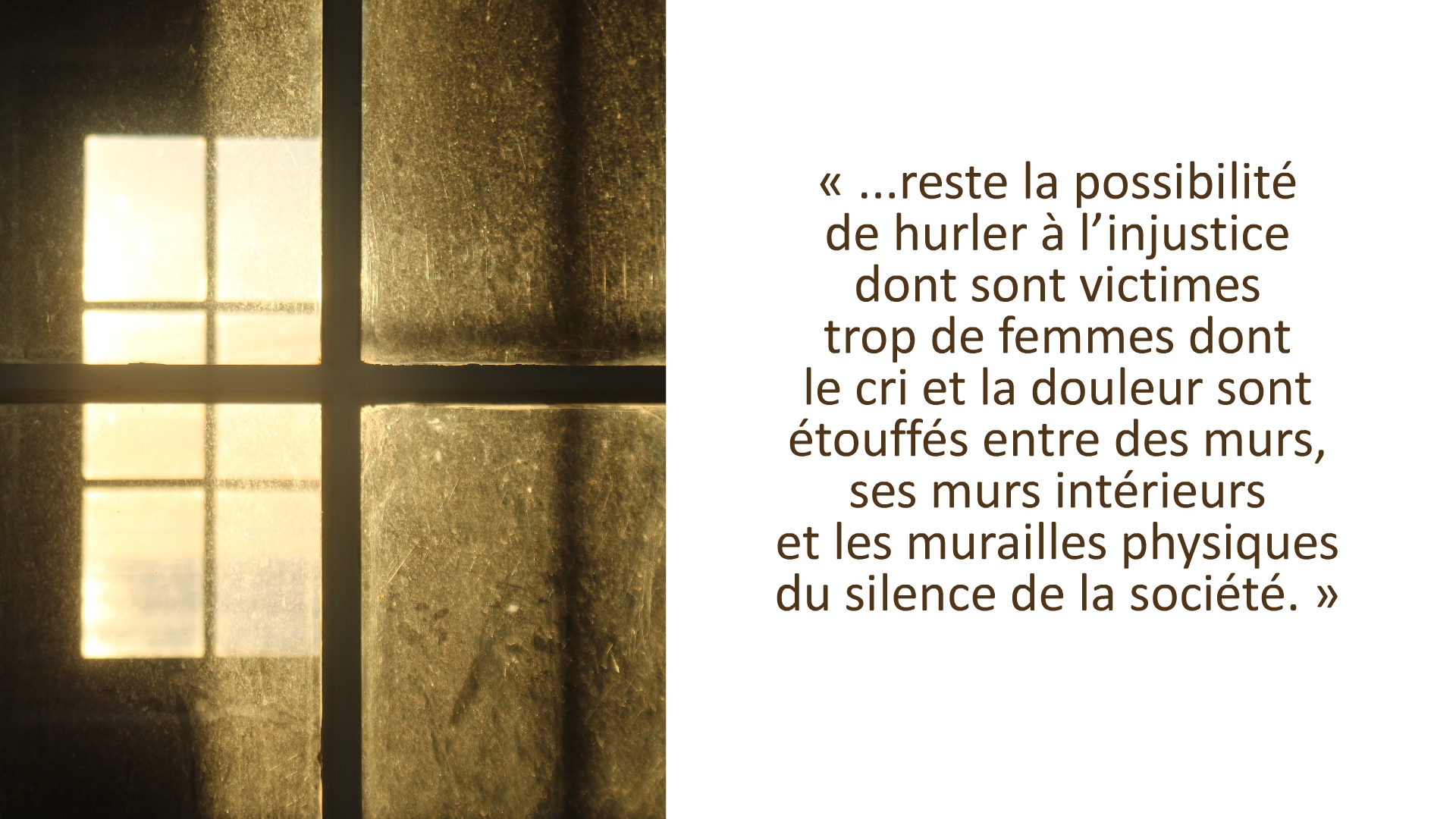 La haine triomphe trop souvent sur l’amour quand un Minotaure utilise la torture physique et mentale avant de finir par assassiner par les coups de poing et de pied, l’arme à feu, l’arme blanche, la hache, la noyade, l’étranglement, et même le feu. Tout arrive trop tard; il ne reste qu’à constater le drame. Une prévention adéquate et une vigilance calculée auraient peut-être pu sortir cette victime de sa solitude, mais reste la possibilité de hurler à l’injustice dont sont victimes trop de femmes dont le cri et la douleur sont étouffés entre des murs, ses murs intérieurs et les murailles physiques du silence de la société.